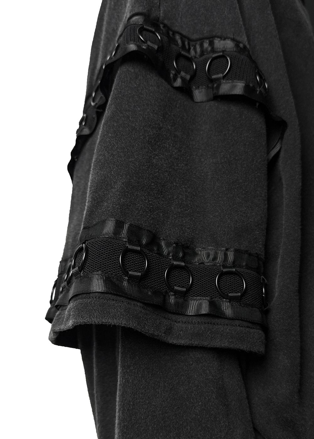 Decorative chainmail made of metal rings and mesh is built into the sleeves.