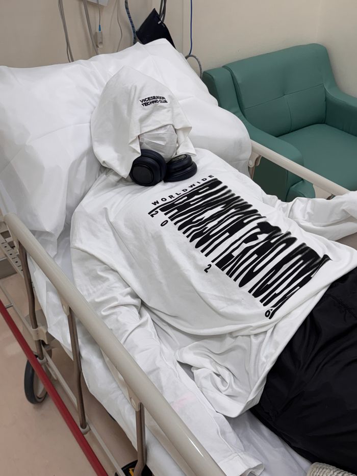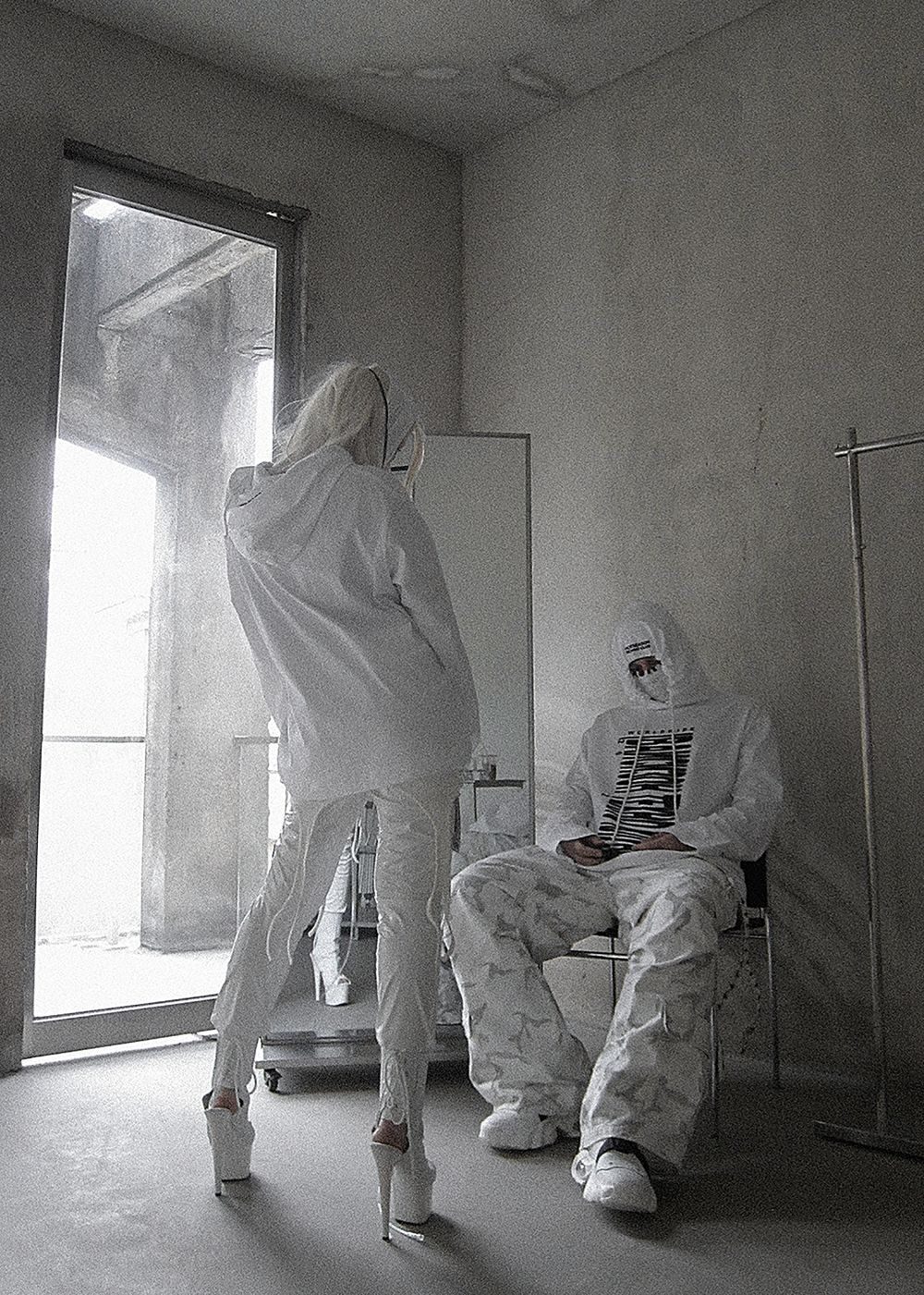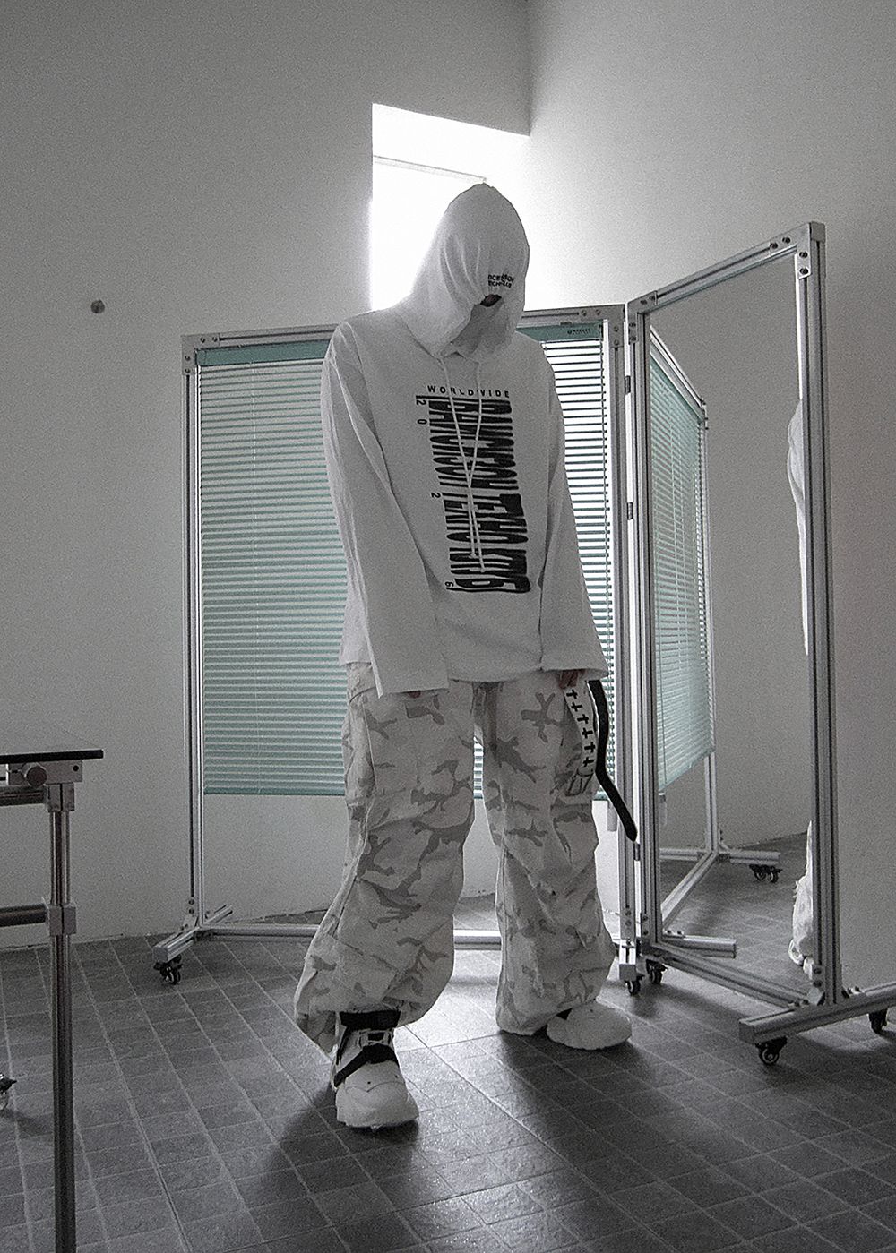 The print is inspired by the 2000s club fashion. A barcode, but not for scanning. Not a code for entry — but a symbol of its absence.