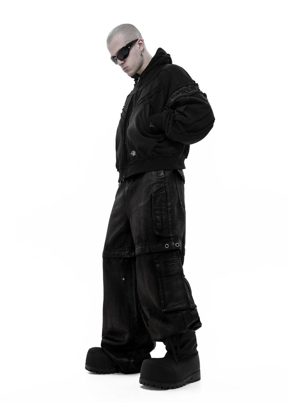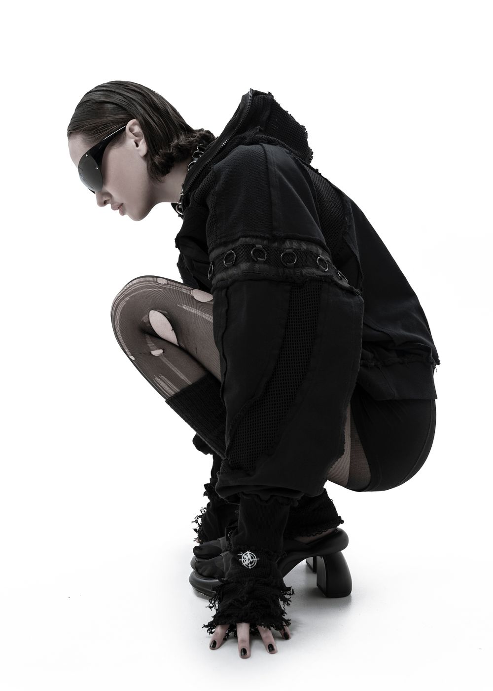 The “SCUM” jeans are a provocation, a mockery of standards and templates. They appear chaotic, as if they've lived through thousands of stories, absorbing the street spirit and rebellion. But behind this lies a thoughtful process: each pair is hand-dyed, and the details are refined to the smallest nuance. Each pair is as unique as its owner. These jeans are for those who play by their own rules and always win. Part of the “Techno Club” line, they feature a unique branded tag in the form of a bank card and a branded techno diskette.